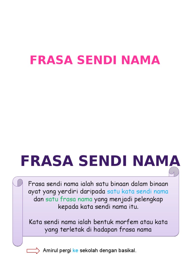 Frasa sendi nama boleh dibentuk melalui empat cara. Kb KSN KNA KN AKomp. Di pasar b Sendi nama kata nama arah dan frasa nama.