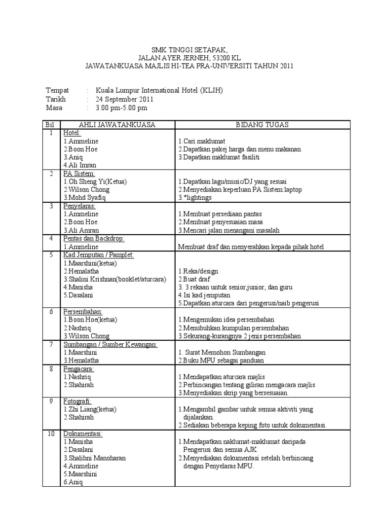 Contoh Kertas Kerja Majlis Hi Tea